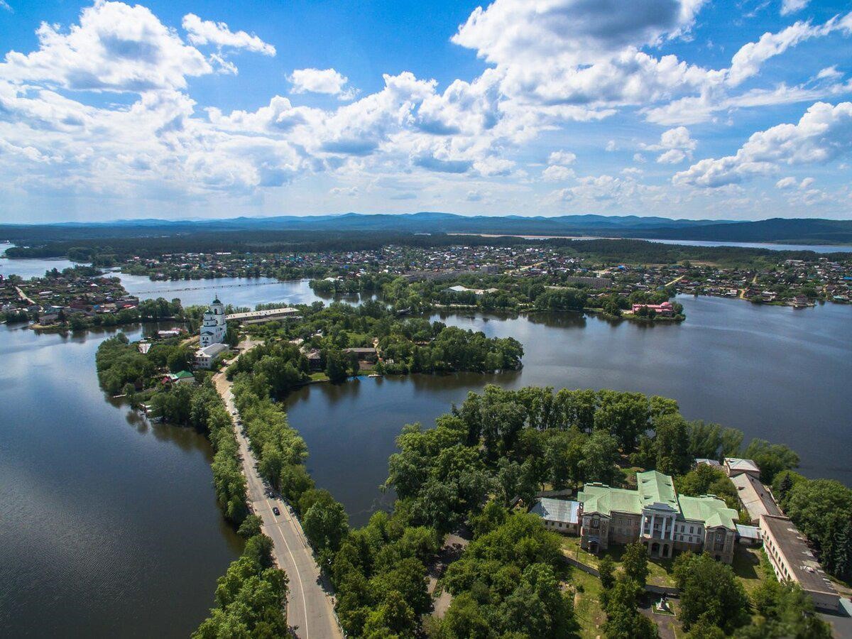 Фактически город рос вокруг этого пруда. И сегодня Кыштым своим видом с высоты птичьего полѐта напоминает Венецию (фото 2). Широкие водные пространства, острова, мосты создают неповторимое, уникальное лицо старинного уральского промышленного города. А силуэты Уральских гор на заднем плане дают великолепное обрамление для всей картины.