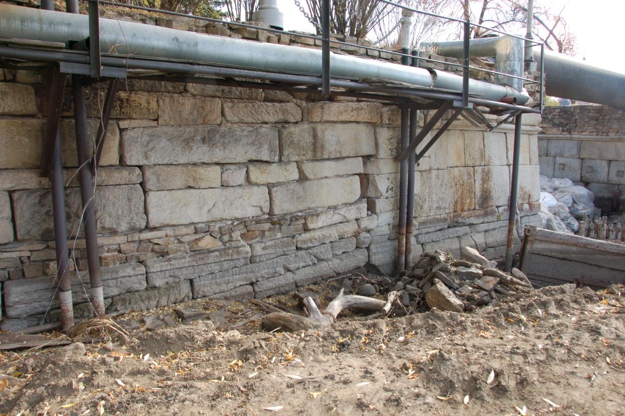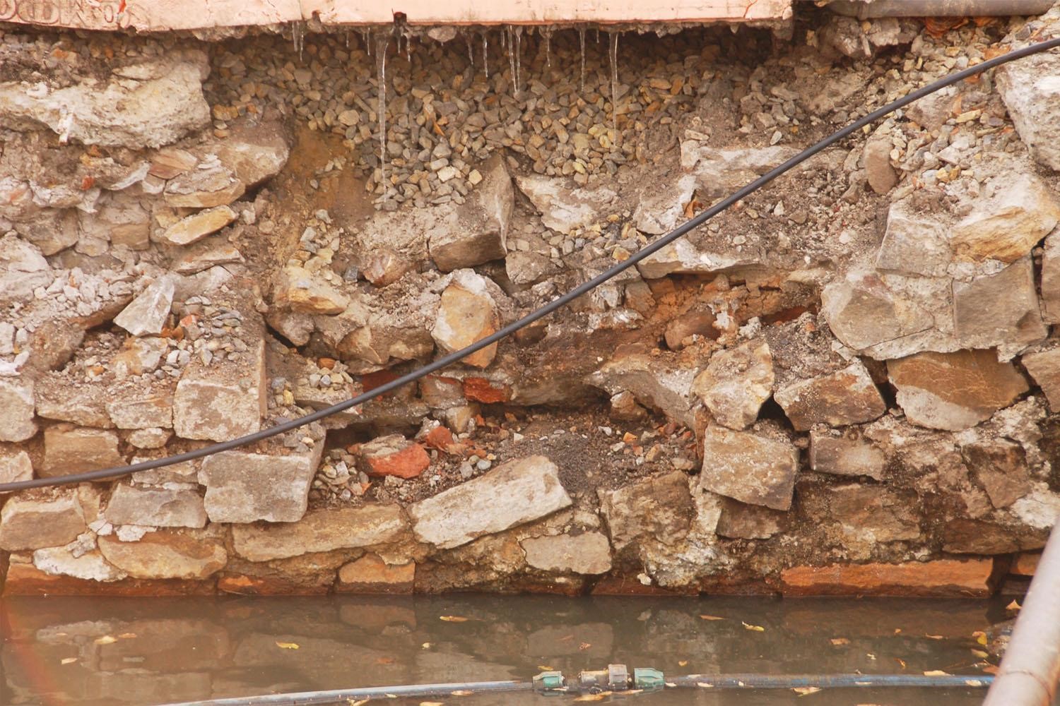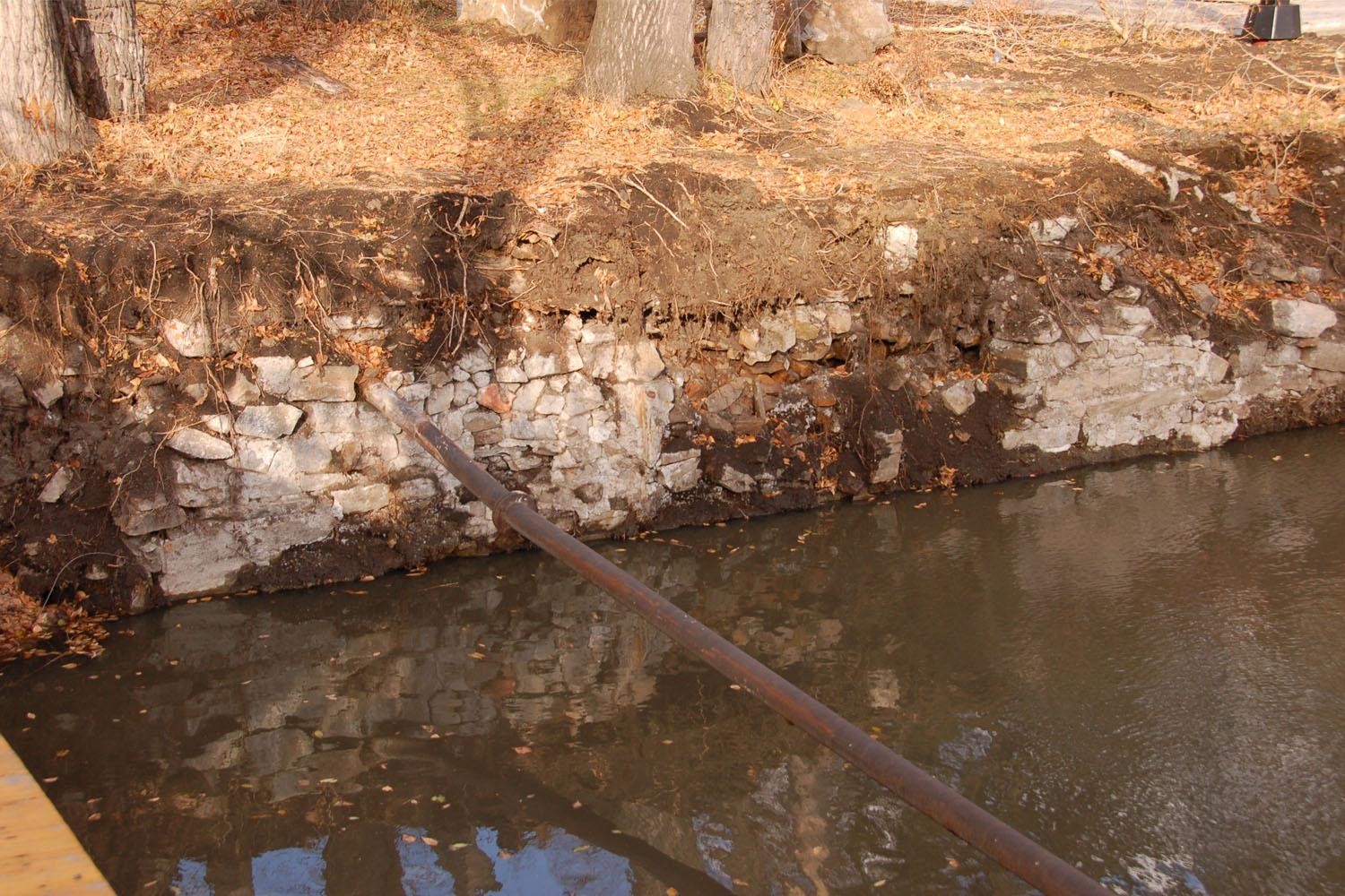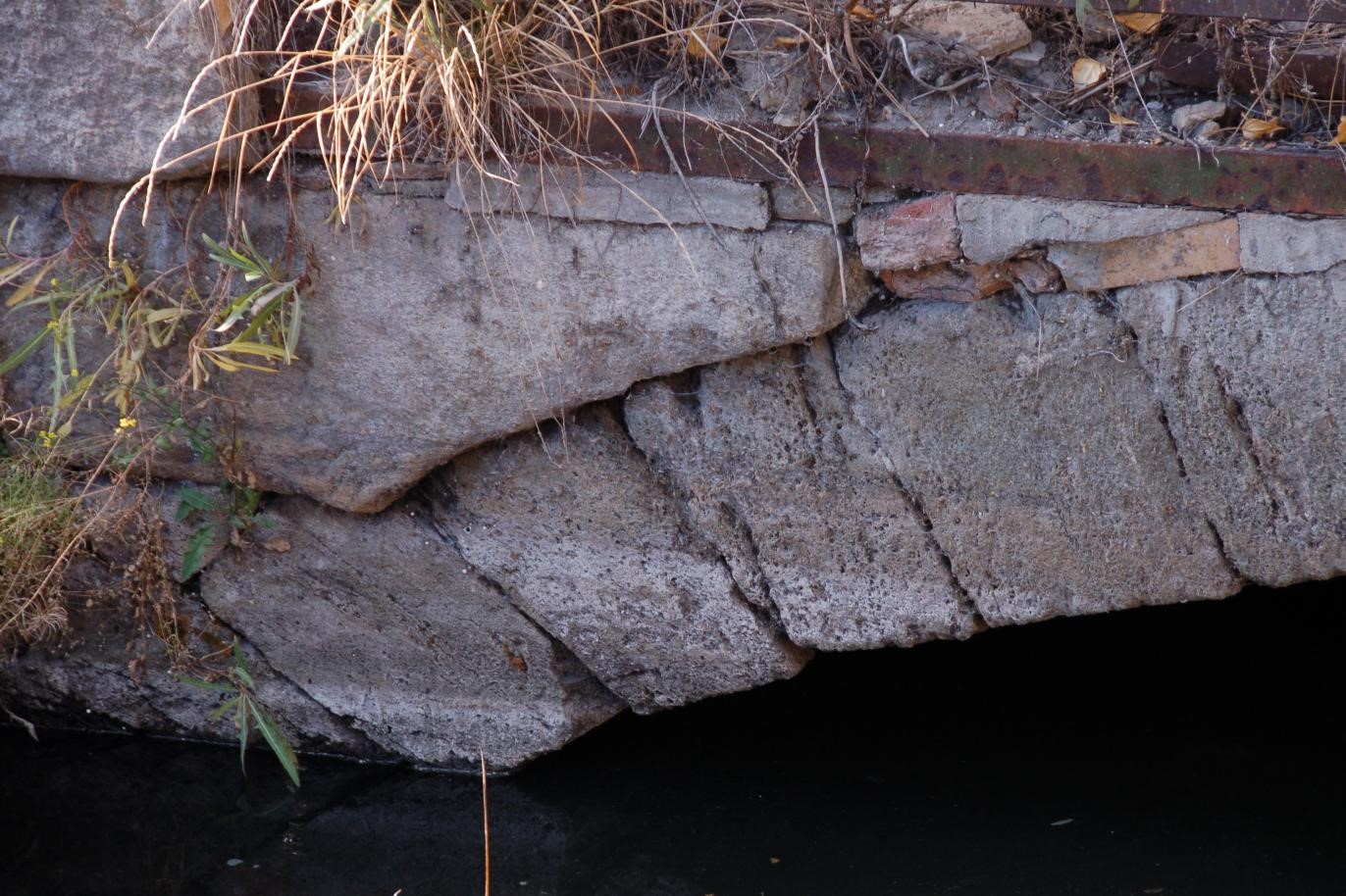 Фото 17. Стенка канала 2 с внешней стороны заводской ограды.