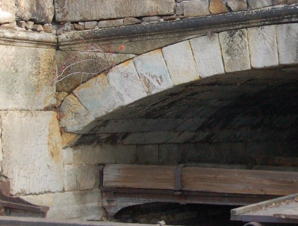 Думаю, комментарии здесь излишни. Это типичные технологии 18 – 20 вв. Кладка из мелкообломочного камня на растворе и фрагмент железной трубы для создания формы арочного пролѐта.