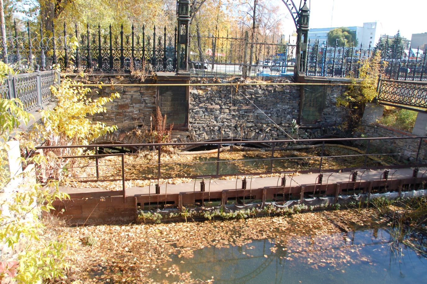 Вода из кыштымского пруда вытекает через два канала – северный и южный. Расстояние между входами в каналы составляет около 380м. Протяжѐнность канала, проходящего к северу от Кыштымского машиностроительного объединения (бывший Верхнекыштымский завод Демидовых), около 490м. Протяжѐнность южного канала (протекает под цехом завода) составляет около 650м.