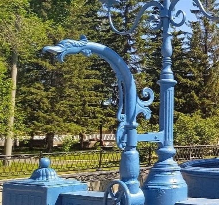 Правда, грифон – совсем не типичный образ для декора сооружений, возводимых в 18 веке. Попытка найти в интернете другие фонтаны в нашей стране, украшенные грифонами, практически ни к чему не привела. Нашѐлся один единственный фонтан в городе Сухуми, построенный в 1947 году. Среди фонтанов, построенных в 18 веке, я не нашѐл ни одного с грифонами, посетив более 50 различных сайтов, посвящѐнных фонтанам. Можно констатировать, что фонтан в Кыштыме совершенно уникален. И не только для России. Вероятно это один из немногих фонтанов в мире, в украшении которых использовался образ этого существа.