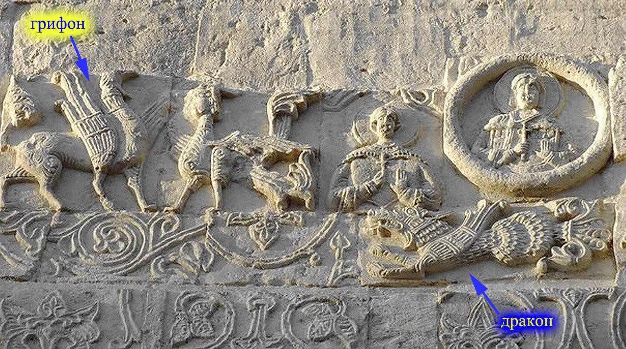 Фото 55. Грифон и дракон на рельефах Дмитриевского собора во Владимире.