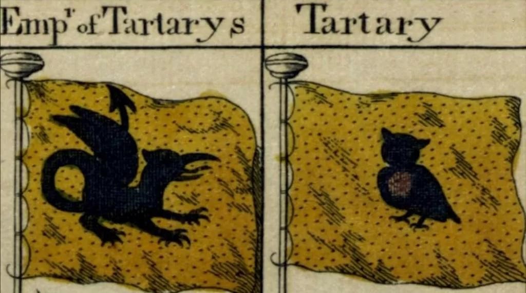 В 1705 г. в Амстердаме голландский картограф Карл Аллард издаѐт «Книгу о флагах» с описаниями флагов разных стран (переиздана в Москве в 1709г.). Среди прочих упоминается «флаг Цесаря Тартарии». На флаге в золотом поле изображѐн… грифон (или дракон). Если ознакомиться с другими источниками, издававшимися в 16 – 19вв., в том числе с Британской энциклопедией 1771г. издания, можно убедиться, что Тартария, как государство (!), воспринималась в Западной Европе совершенно серьѐзно. А тот факт, что у нас практически нет русского картографического материала об этих территориях, свидетельствует лишь о том, что эти материалы на каком-то этапе были изъяты из обращения.